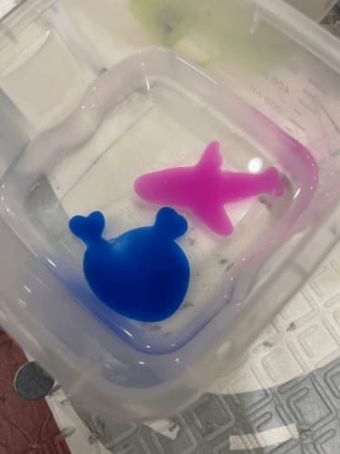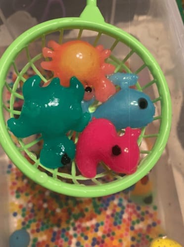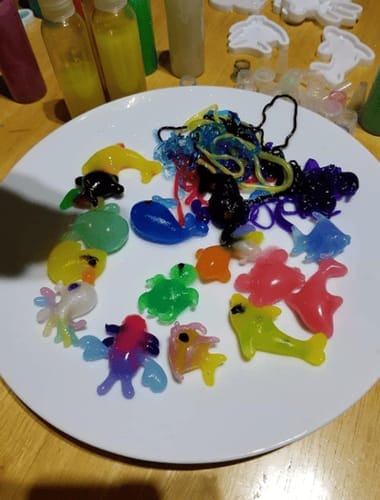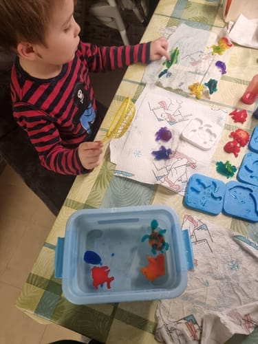 Dette sæt er meget godt lavet. Jeg elsker, at det har sin egen opbevaringsbeholder. Vi legede i timevis. Sund fornuft siger dig, at hvis du vil have farverne til at holde, skal du ikke overfylde formene hver gang. Vi er ikke løbet tør for nogen farver endnu! Vi lader squishierne ligge i opløsningen natten over for at sikre, at indersiden gelerer ordentligt. Det tager lidt tid, før de kan klemme sig sammen og lege med dem, og det kan være svært at forklare for mindre børn. Dinosauræggene og vandperlerne er en ekstra bonus. Kan varmt anbefales! Sjovt for alle aldre.