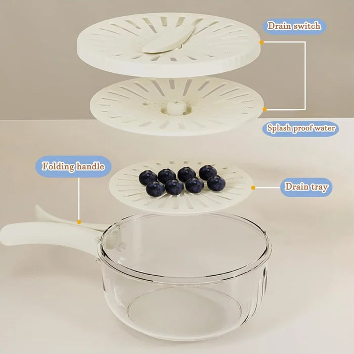 Diseño multifunción: Nuestro tazón multifuncional para lavar frutas y verduras está diseñado con un colador interior extraíble para filtrar, un contenedor exterior transparente para el almacenamiento y una cubierta hermética para mantener el contenido fresco, ofreciéndole una experiencia de usuario agradable.